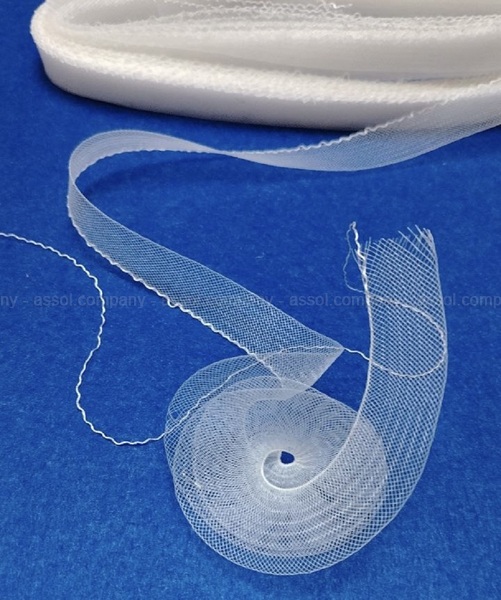 Регилин с нитью. Продается упаковками, в упаковке 30 ярд (27,42 м). Ширина 2 см. В ассортименте огромная гамма цветов и размеров. Регилин применяют при пошиве бальных платьев,танцевальных костюмов,шляп и других текстильных изделий,а также используется при создании декоративных элементов (цветы,банты) и многое другое. Регилин имеет по краю нить, потянув за которую регилин собираеться в сборку (рюшу,складку).