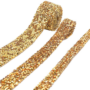 Тесьма со стразами клеевая,ширина 2 см, цвет золото.